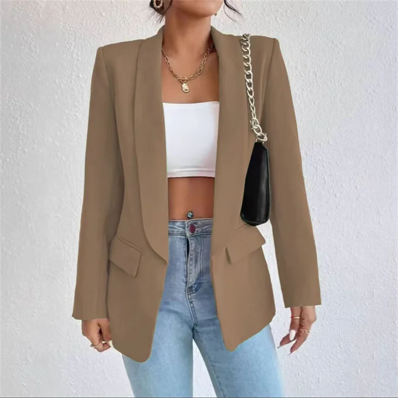 A refined women's cardigan blazer perfect for autumn and winter. Its tailored lapel collar and structured design offer timeless elegance, while the warm fabric keeps you comfortable through cooler seasons. Layer it over any outfit for an effortlessly polished appearance.