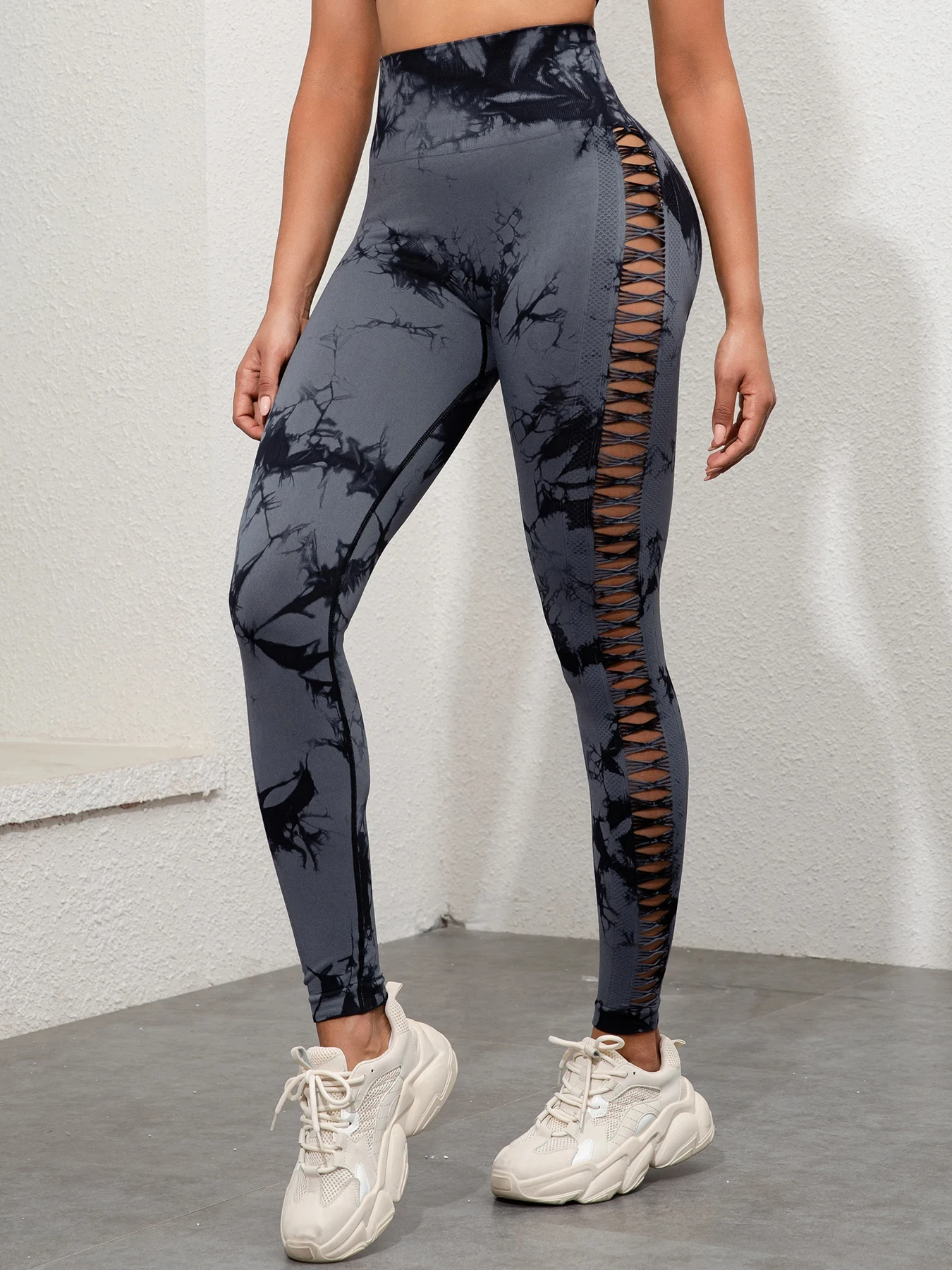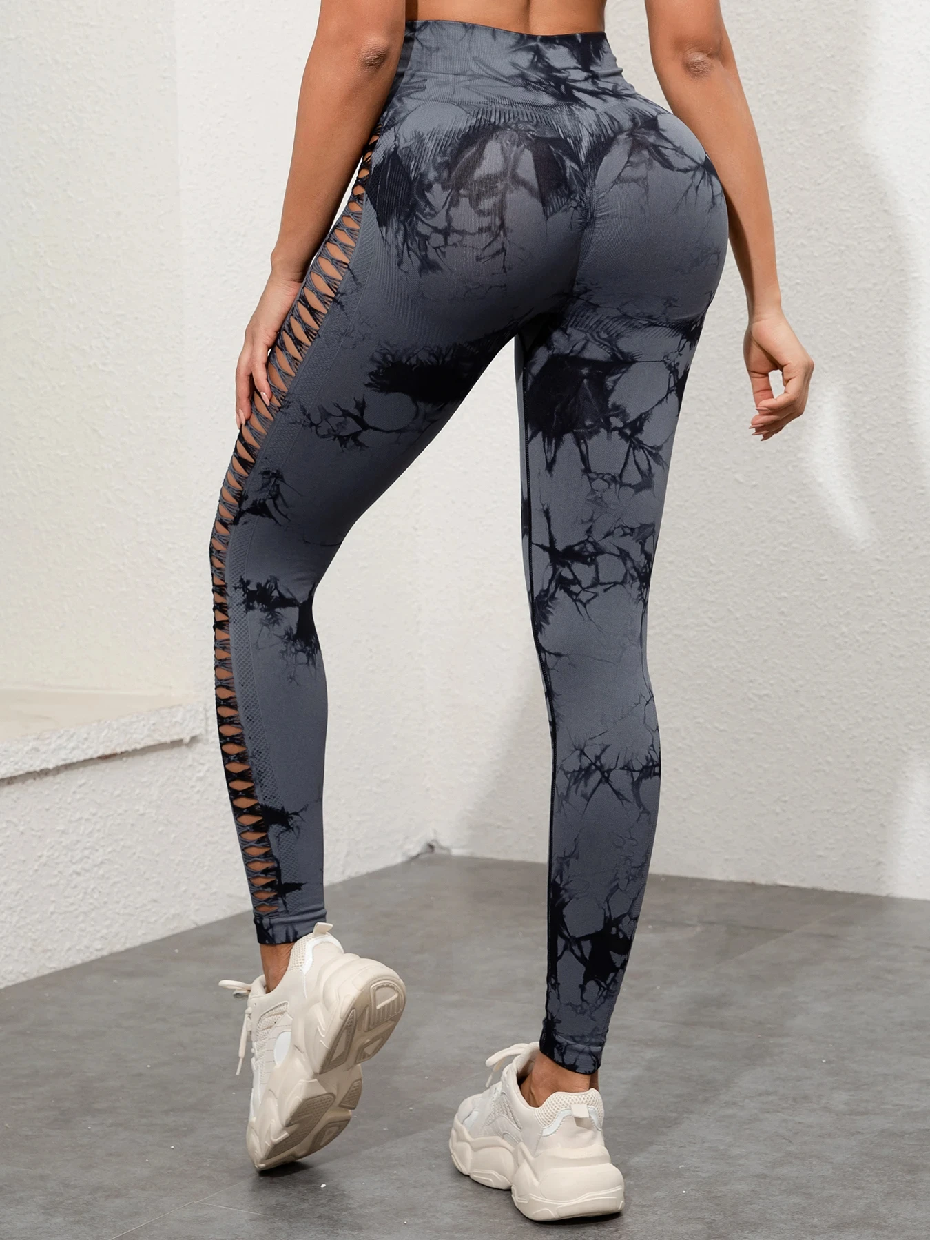 Rock these tie-dye leggings with high-waist support, seamless comfort, and a flattering butt-lift design. Bold hollow-out details and stretchy fabric make them perfect for yoga, gym sessions, or anywhere you want to feel confident and fabulous.
